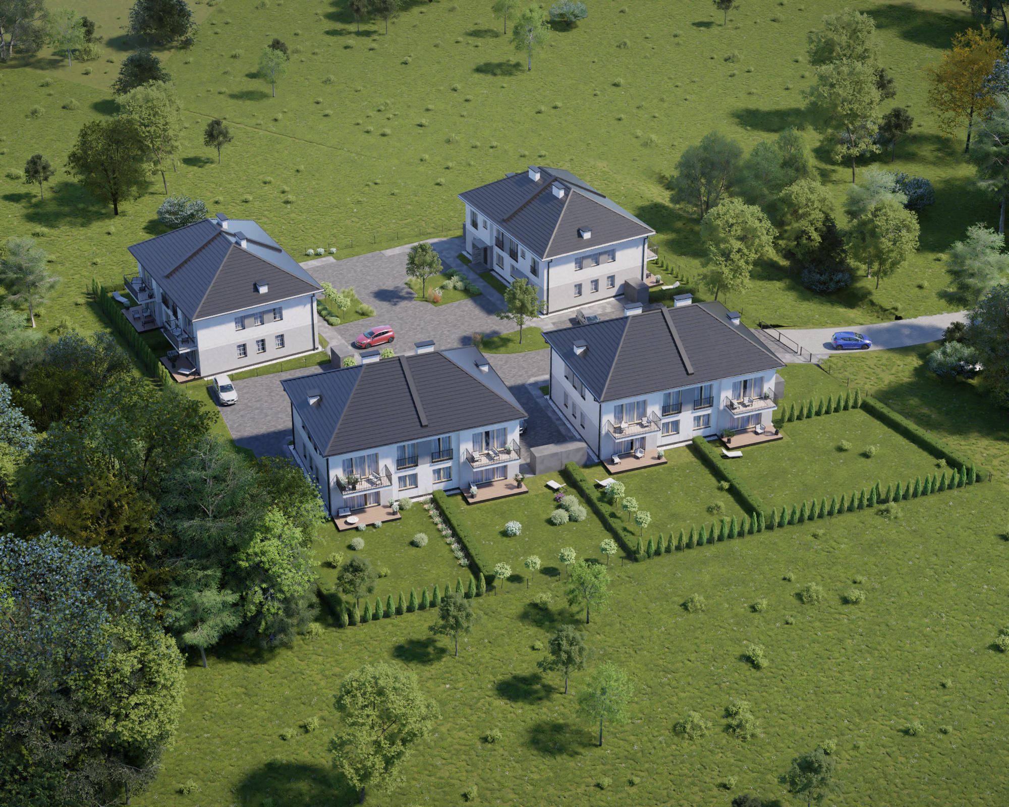 Kameralne osiedle położone jest w otoczeniu zieleni oraz niskiej jednorodzinnej zabudowy, charakterystycznej dla dzielnicy Wawer. Lokalizacja ta stwarza doskonały klimat do wypoczynku, a liczne ścieżki i trasy rowerowe umożliwiają aktywne spędzanie czasu wolnego. W odległości krótkiego spaceru znajdują się takie miejsca jak: Jezioro Żabie, Leśna Plaża czy łąki nad Wisłą. Blisko również do pełnej infrastruktury miasta.